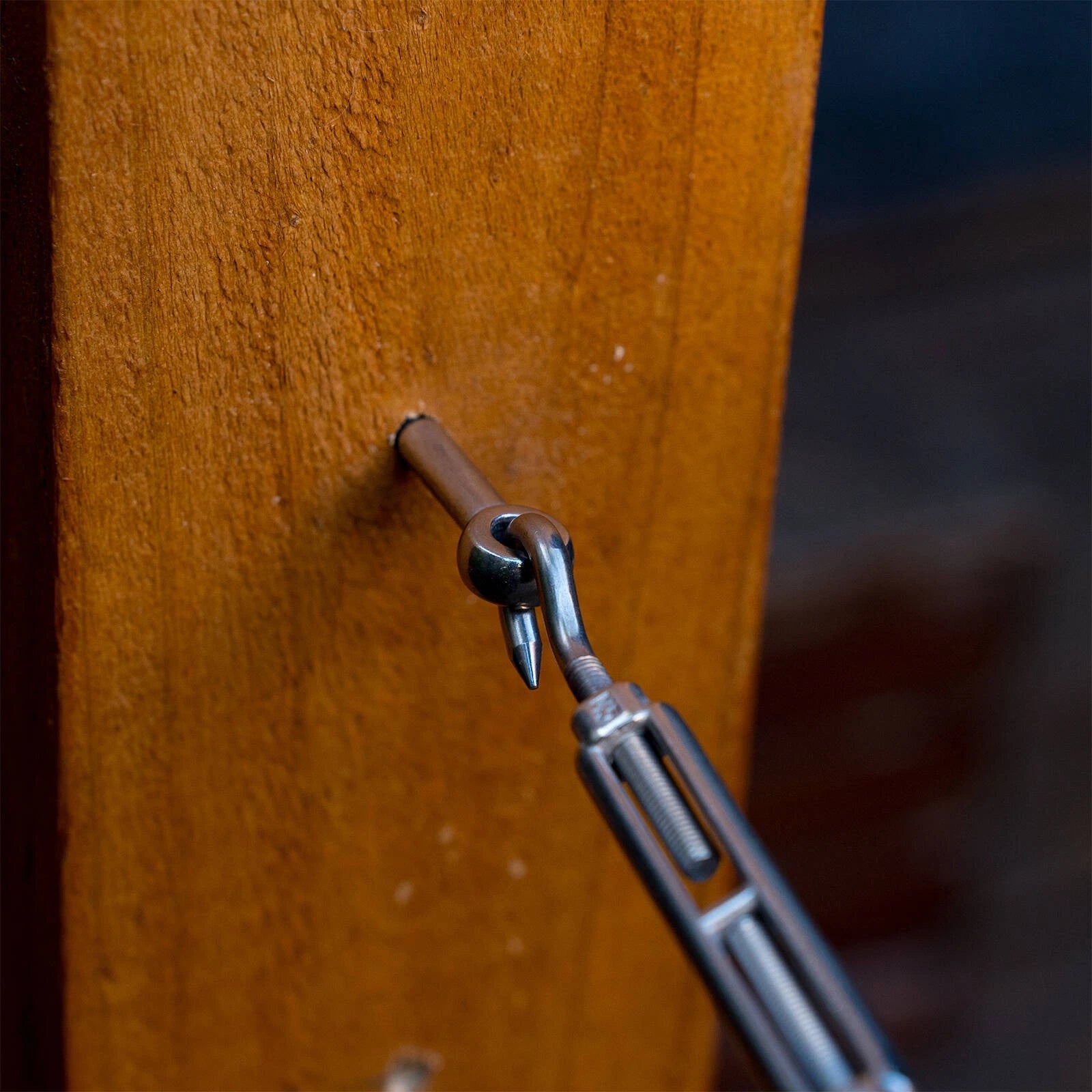 These lag screws are designed to provide a reliable, sturdy anchor point for various rigging applications, making them an essential choice for outdoor projects requiring durable fasteners.