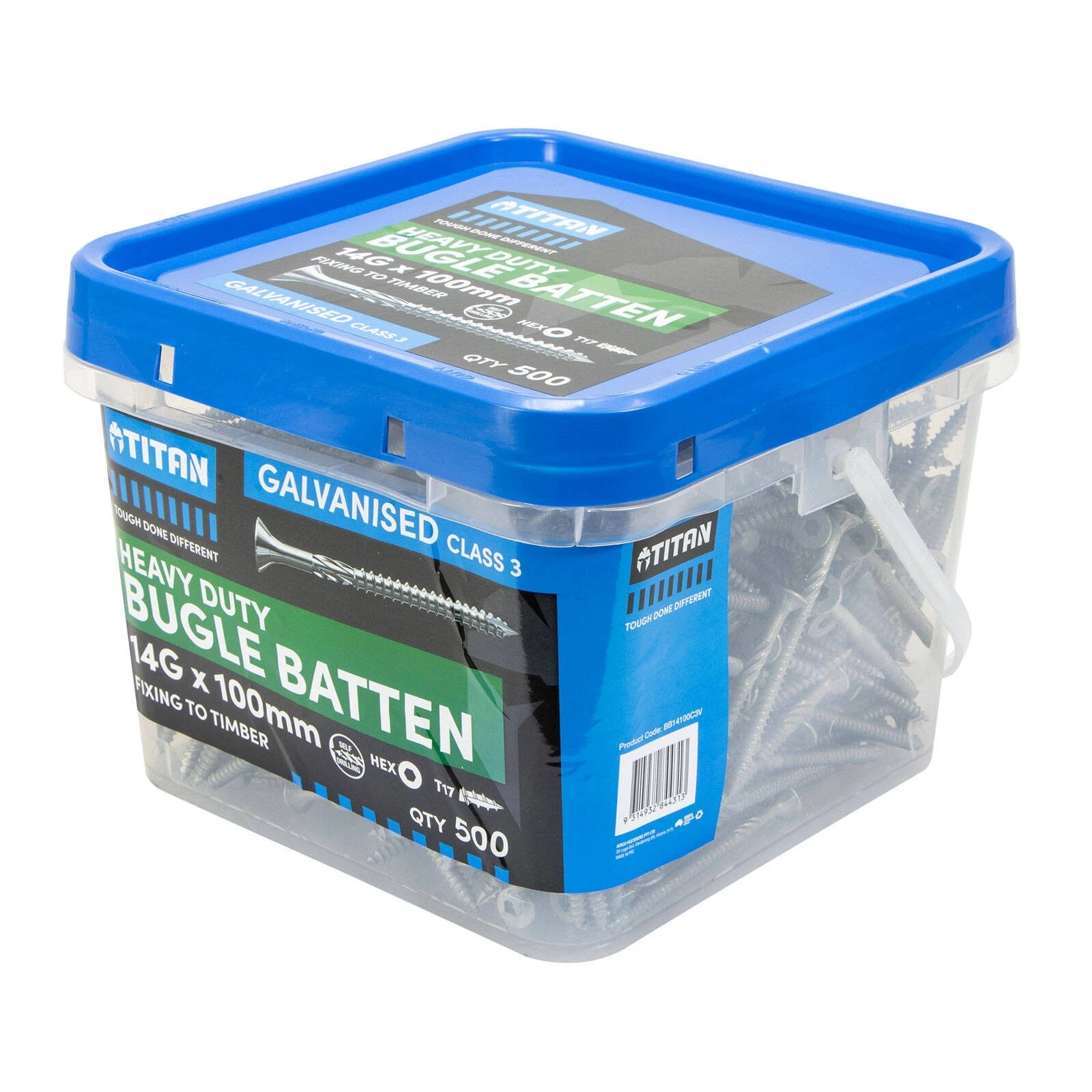 1 x Titan 14G x 100mm CL3 Galvanised Bugle Batten Screw – 500 Pack