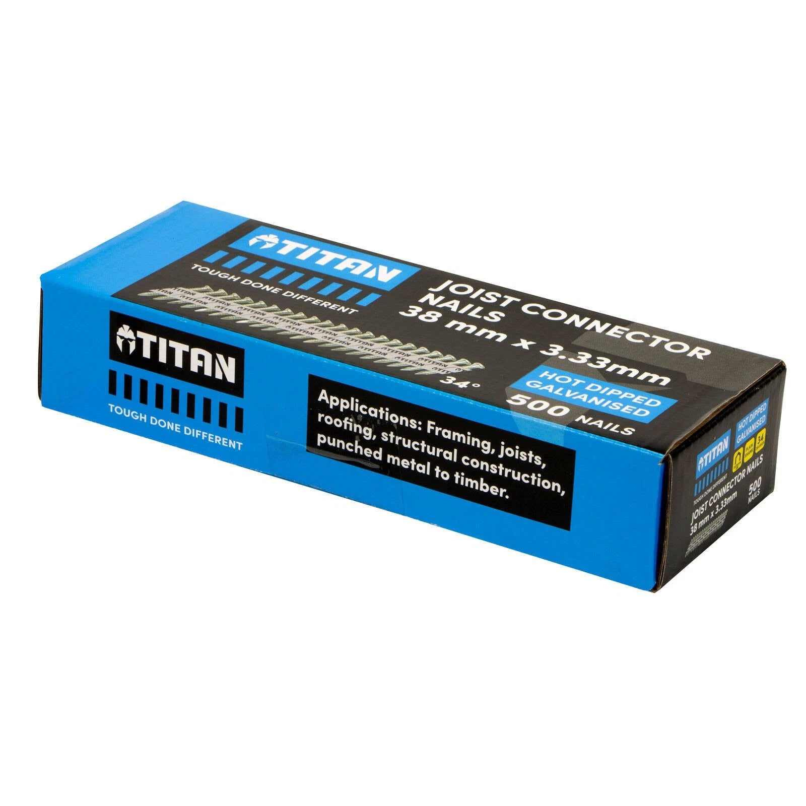 Upgrade your construction projects with the reliable Titan 38 x 3.33 mm Hot Dipped Galvanised Joist Connector Collated Nails. Designed for durability and precision, these nails are ideal for framing, flooring, fencing, and structural applications. Collated for easy use, they ensure efficient and secure fastening in tight spaces.
