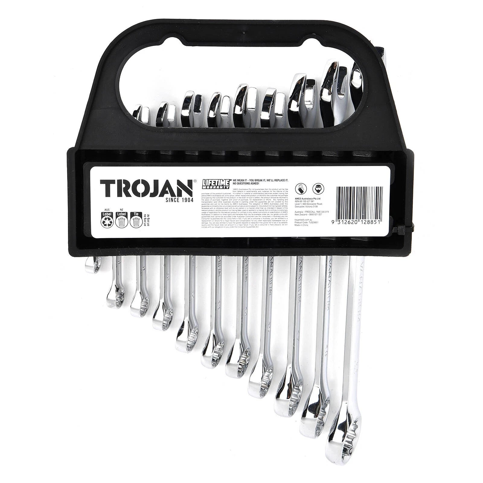 Upgrade your toolkit with the Trojan 11 Piece Metric Combination Spanner Set, designed for durability, precision, and versatility. Perfect for DIY enthusiasts, automotive work, and construction projects, this set offers reliable performance for a variety of tasks.