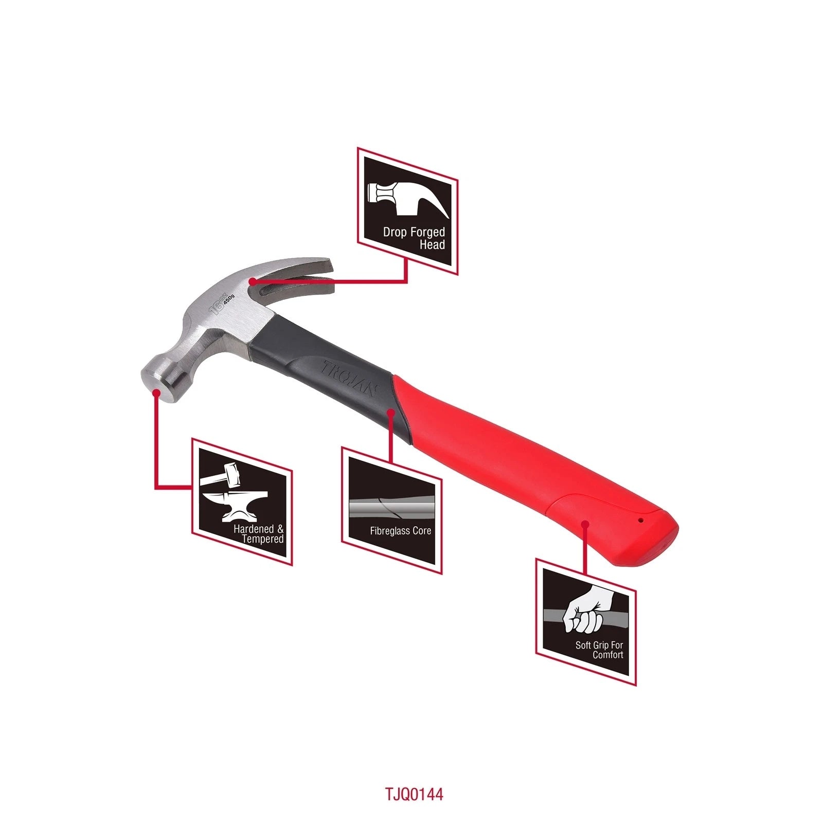 1 x Trojan 16oz (450g) Fibreglass Claw Hammer