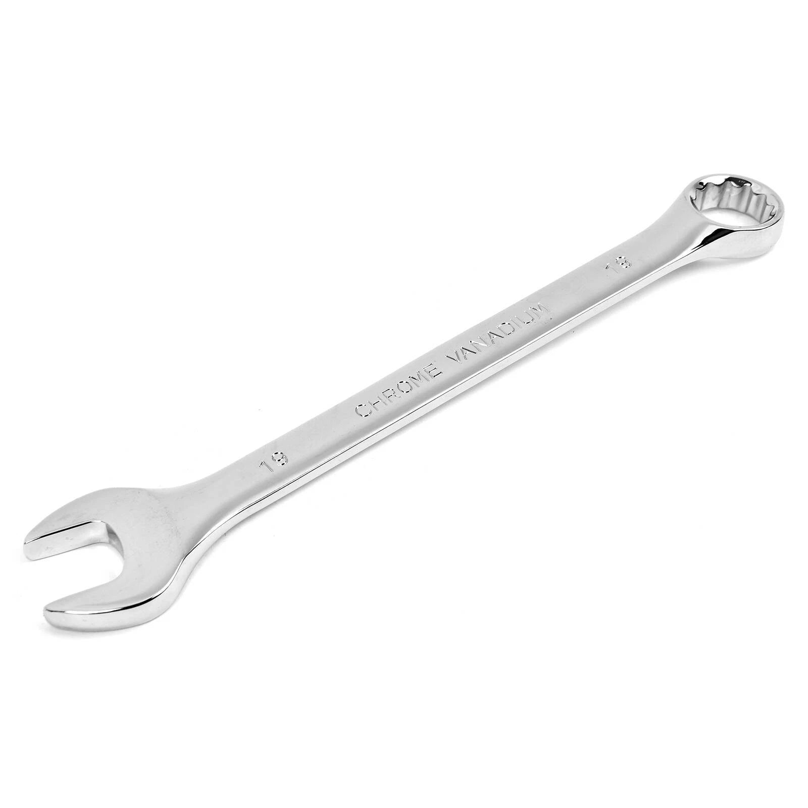 The Trojan 19mm Combination Spanner features a robust design with a polished chrome vanadium finish, providing both strength and corrosion resistance. Its 12-point ring end allows for quick, secure fastening, while the open end offers high torque capability for challenging tasks.