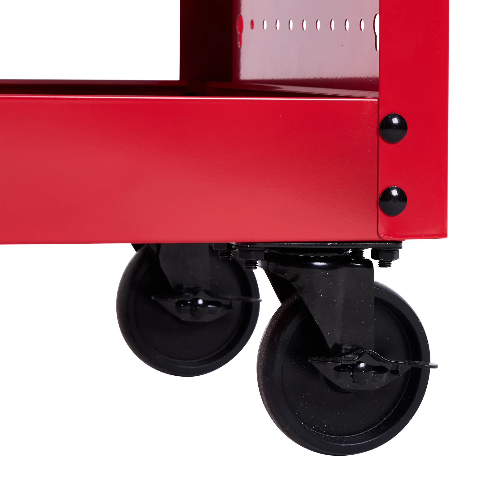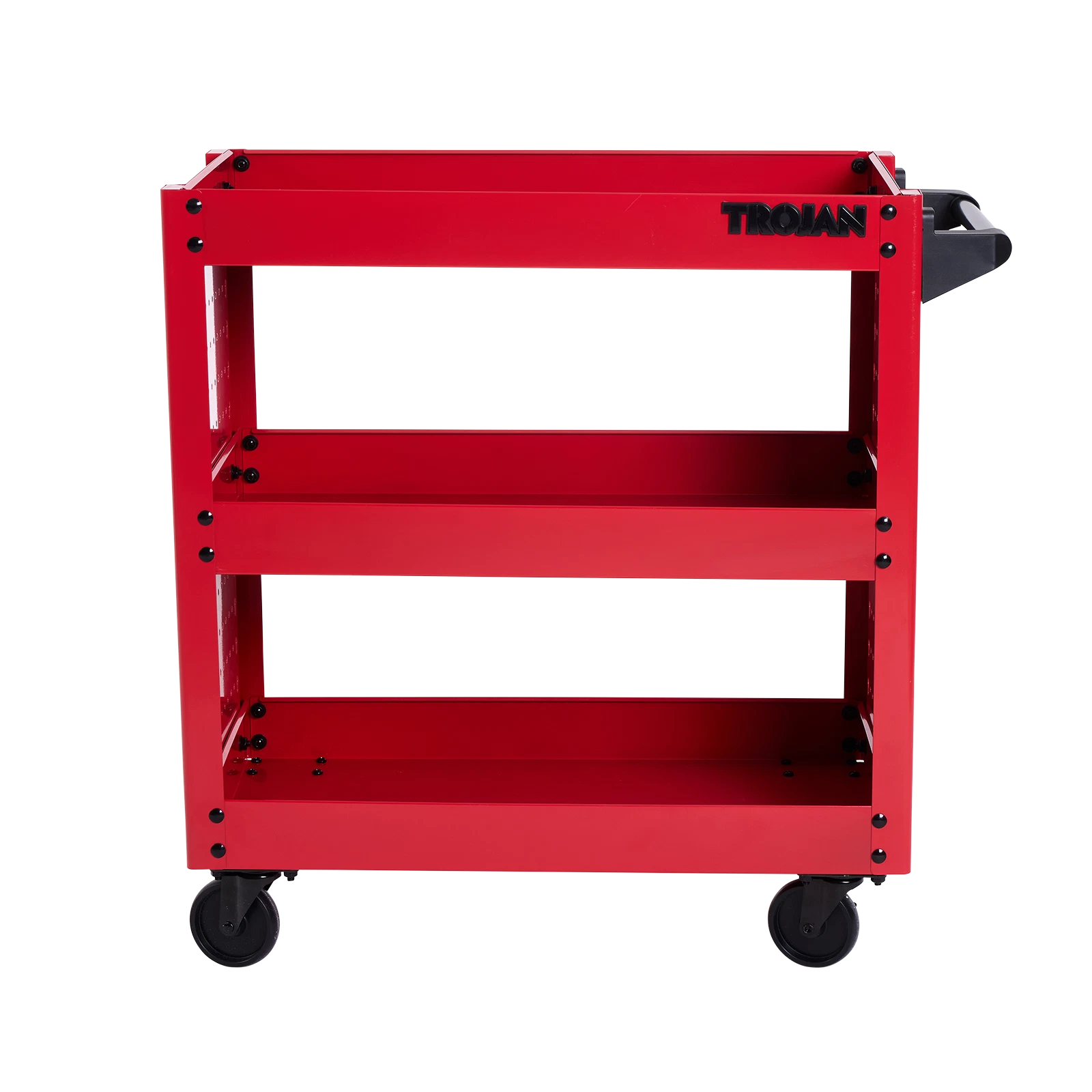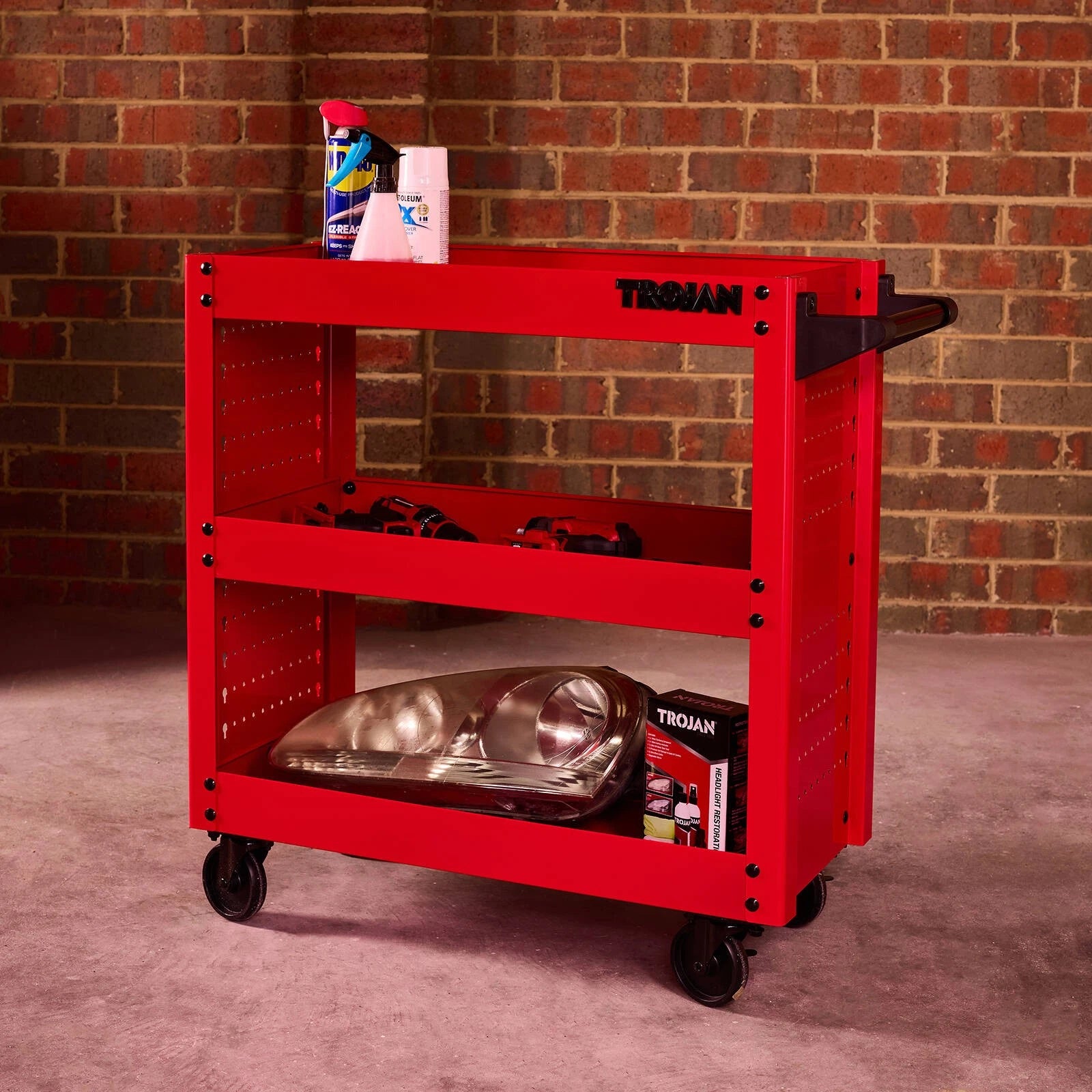 Organize your workshop or garage efficiently with the Trojan 3 Tier Pegboard Service Cart. Designed for durability and versatility, this all-steel cart offers ample storage space and easy mobility for your tools and equipment.