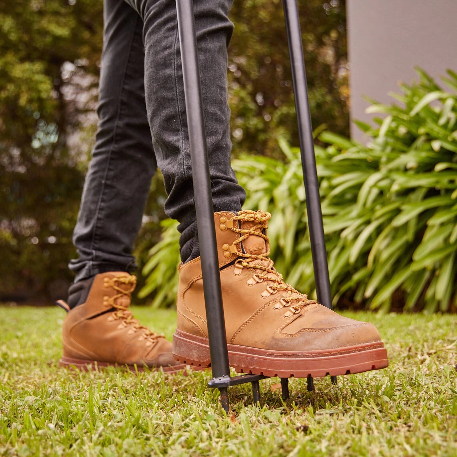 Improve your lawn's health with the Trojan All Steel Spiked Aerator. Designed for durability and ease of use, this aerator helps promote deeper roots and a lush, healthy lawn by allowing air, water, and nutrients to penetrate the soil effectively.