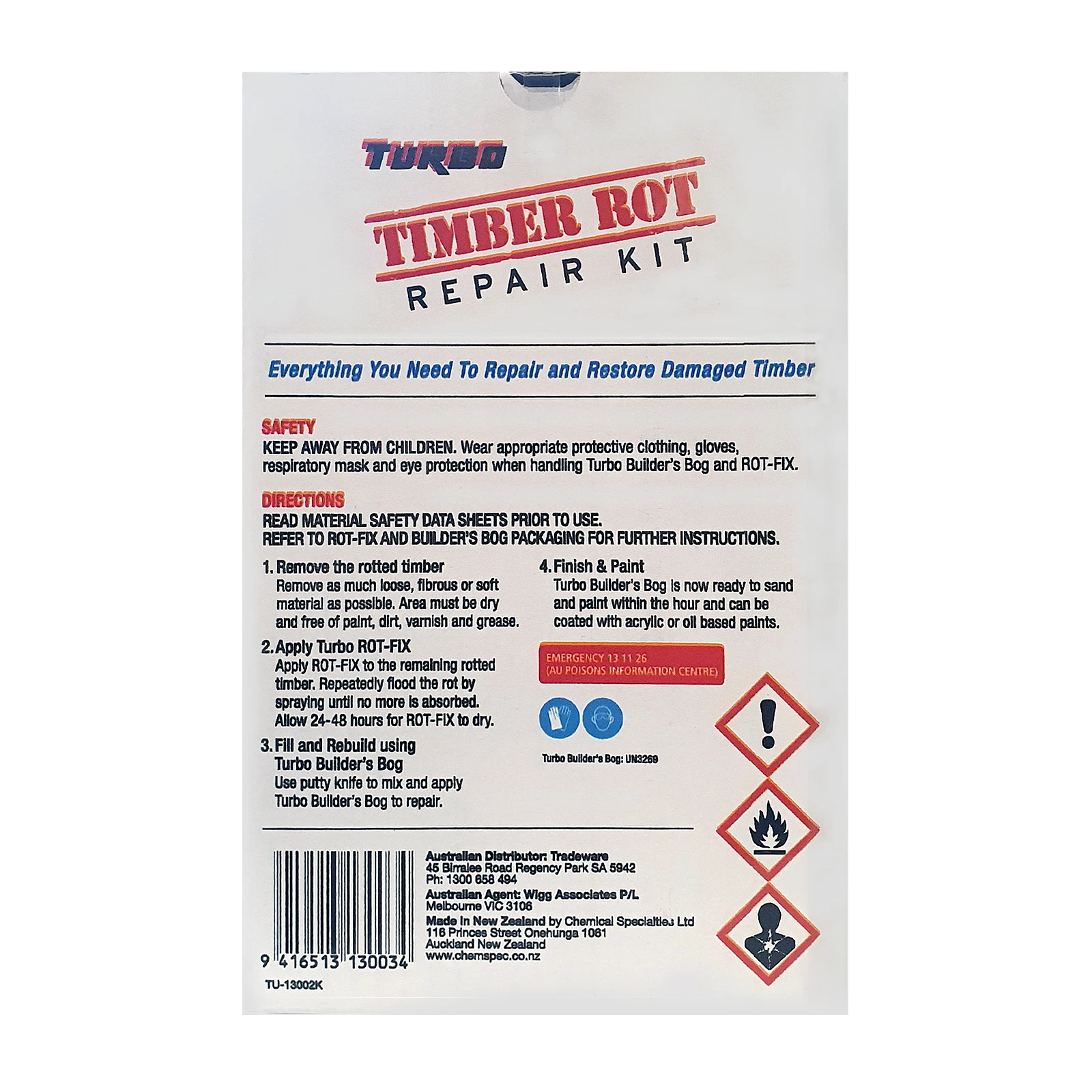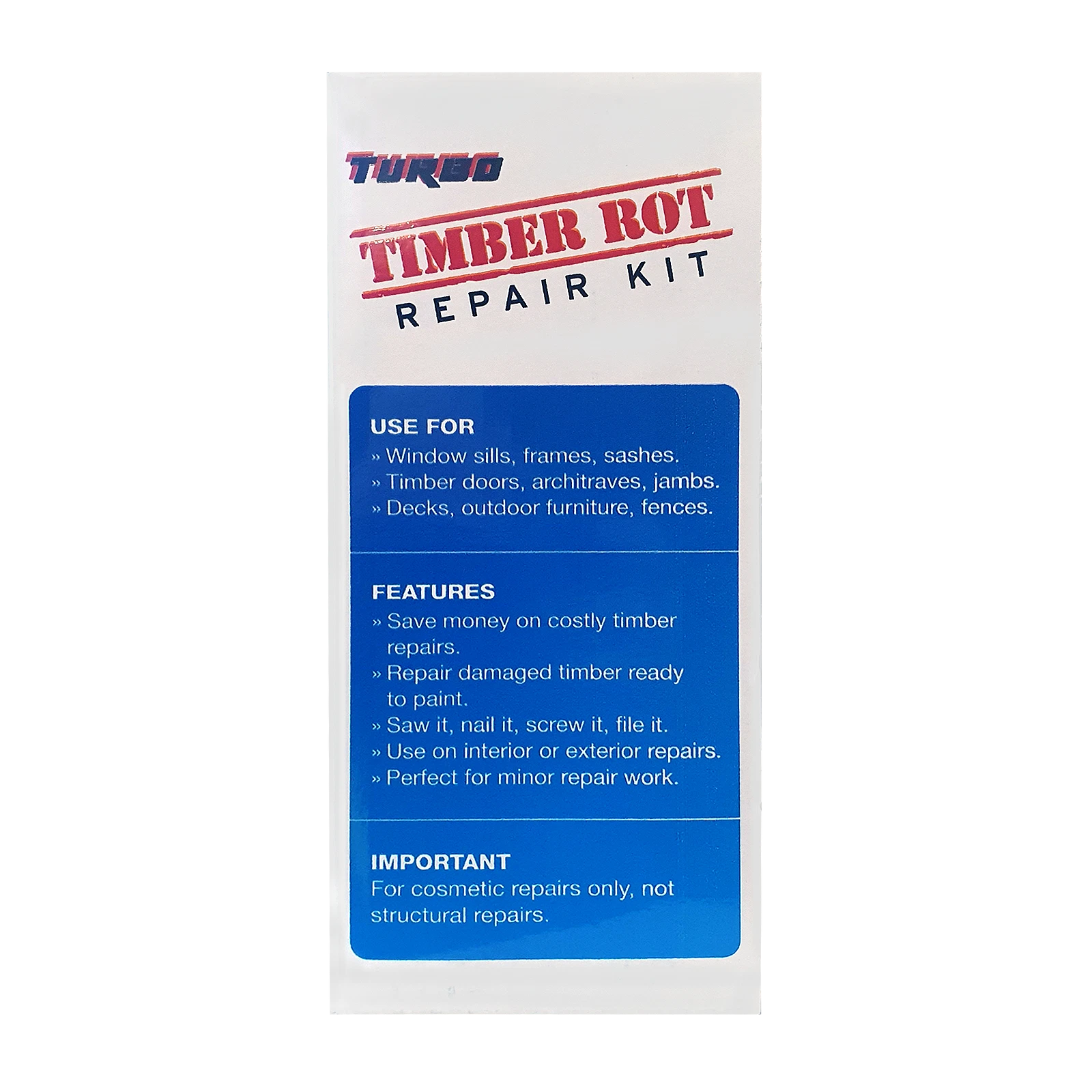Restore and repair damaged timber quickly and effectively with the Turbo 500ml Timber Rot Repair Kit. Perfect for windows, doors, architraves, decks, fences, and more, this comprehensive repair system provides everything you need to fix rotted or softened timber and bring it back to life.