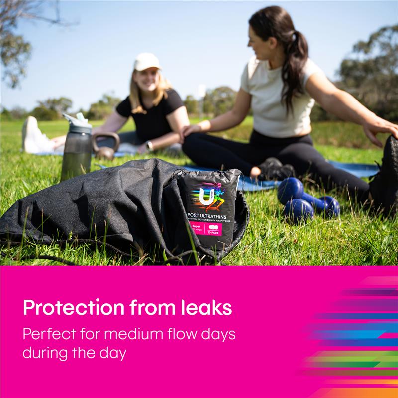 U by Kotex Sport Ultrathins are specifically designed to offer period protection while you're working out. The super-absorbent Flexfit* Core moulds to your body, providing protection against leaks even during your most vigorous workout or challenging Pilates class. So now you can forget your pad and just concentrate on your workout.