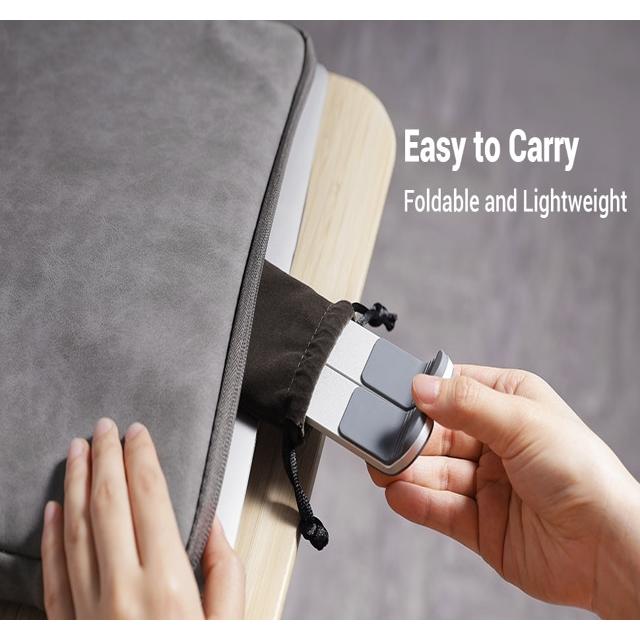 Stable Triangle DesignSolid laptop stand all around Made of oxidized aluminum alloy, it ensures a stable hold and long service life even with larger, heavy laptops up to 17.3 inches. Holds your laptop even when typing or in a high position.Practical height adjustment in 5 levelsThe UGREEN aluminum laptop stand has 5 levels, perfect for holding laptops and large tablets such as the iPad Pro. Provides you with the most ergonomic typing position as well as the best camera position for video conferencing.Larger compatibility up to 17.3 inchesSolid laptop stand made of high-quality aluminum construction for a stable hold even with larger laptops up to 17.3 inches.Hollow-out Cooling DesignThis mount raises your laptop and provides better ventilation so that the laptop will no longer fall due to overheating.Skidproof SiliconeSoft silicone coating on the surface and four feet make this laptop holder useful against scratches on the notebook case. Two curved feet hold the laptop on it firmly in place without it slipping.Compact & FoldableThe notebook stand with a scissors mechanism can be folded compactly and easily plugged into the felt bag provided. Fits in any bag, easy to carry anywhere for an ergonomic workplace on the way.