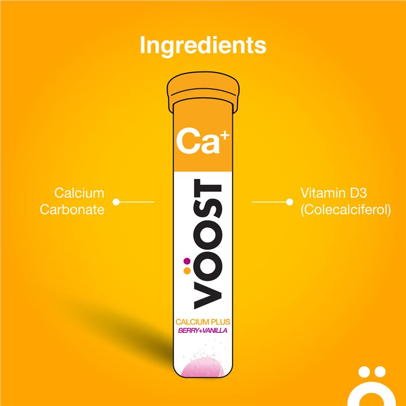 VÖOST Calcium Plus Helps Support Bone HealthDelicious berry and vanilla flavourThe Great-Tasting Vitamin Boost