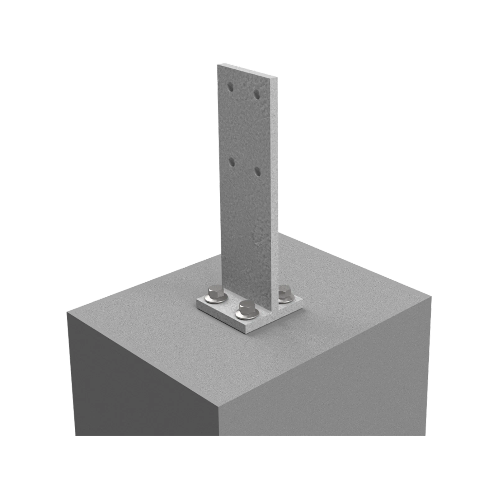 The VUEPRO T-Blade Post Support is engineered for strength and aesthetic appeal. Its concealed welds provide a stronger connection between vertical and horizontal plates, ensuring stability and a polished look. The bracket's design allows for easy bolting onto concrete, making it ideal for large decorative timber posts where a concealed fixing is desired.