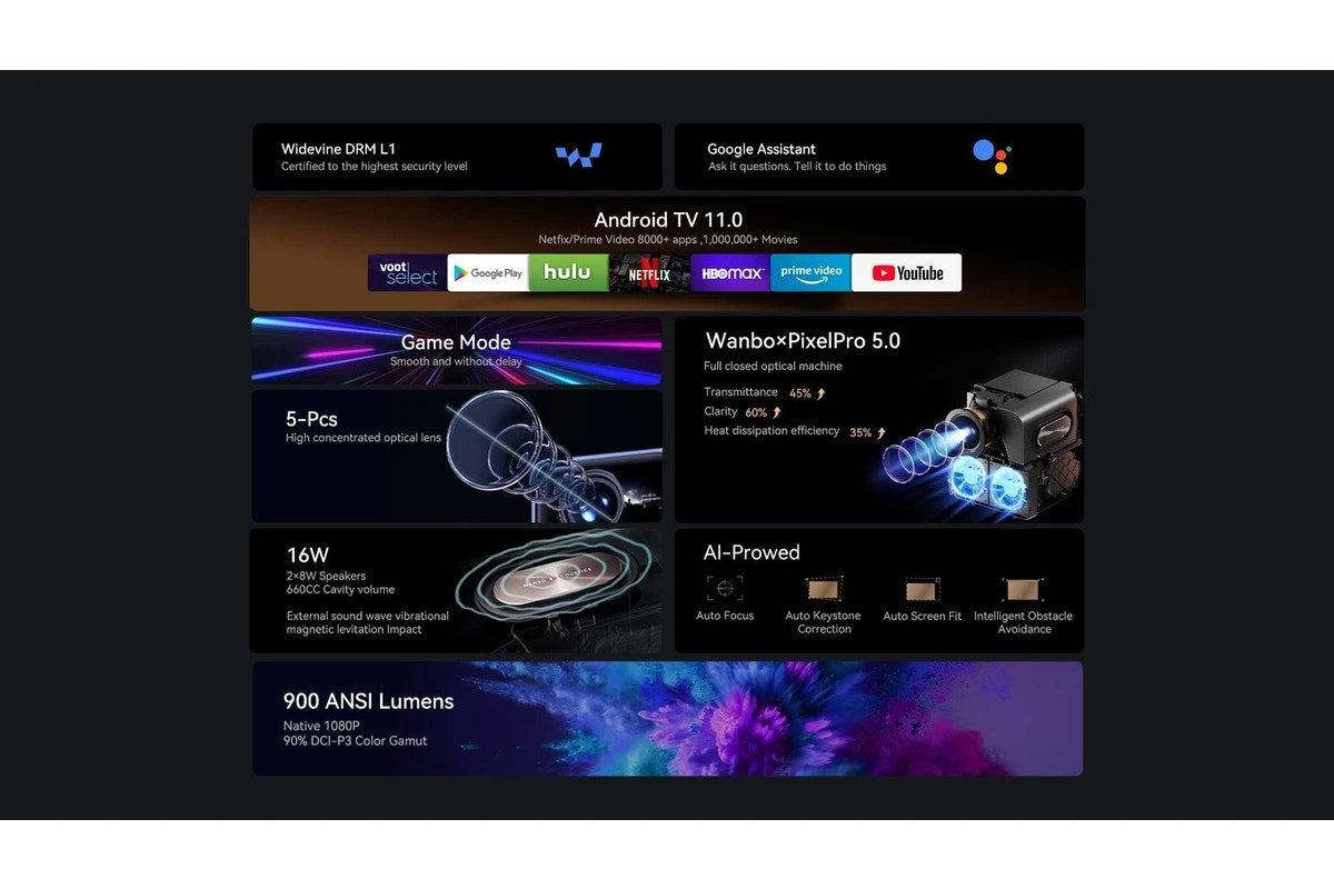 Enjoy cinema-quality viewing at home with the Wanbo Mozart 1 Pro Full HD Smart Projector. With sharp 1080p resolution and smart features, it’s perfect for movies, gaming and streaming anywhere.