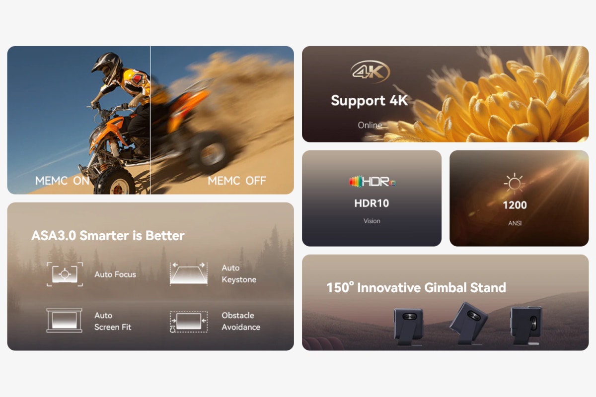 With a 33% boost in brightness from the previous model, enjoy clear and vivid visuals anytime – day or night – ensuring uninterrupted movie viewing.