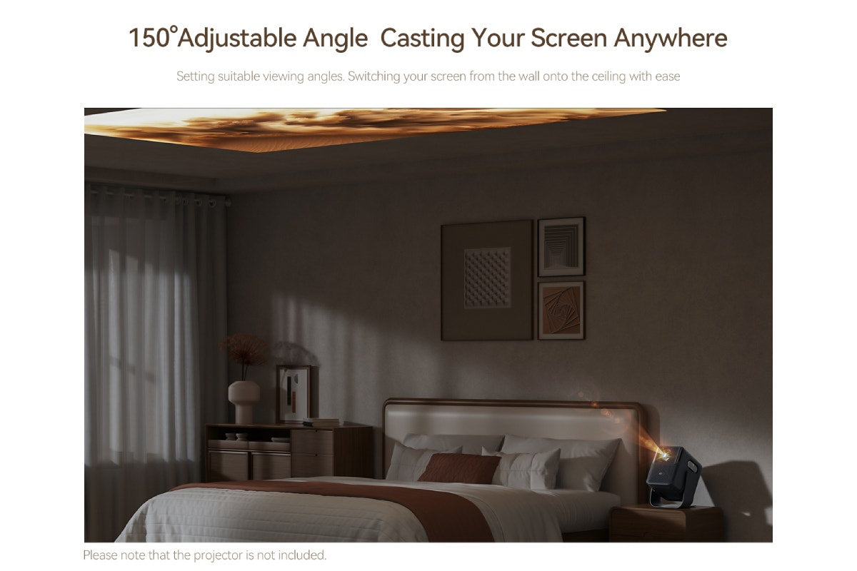 Easily adjust the projection angle up to 150°, allowing you to switch your screen from wall to ceiling effortlessly for the most comfortable viewing experience.