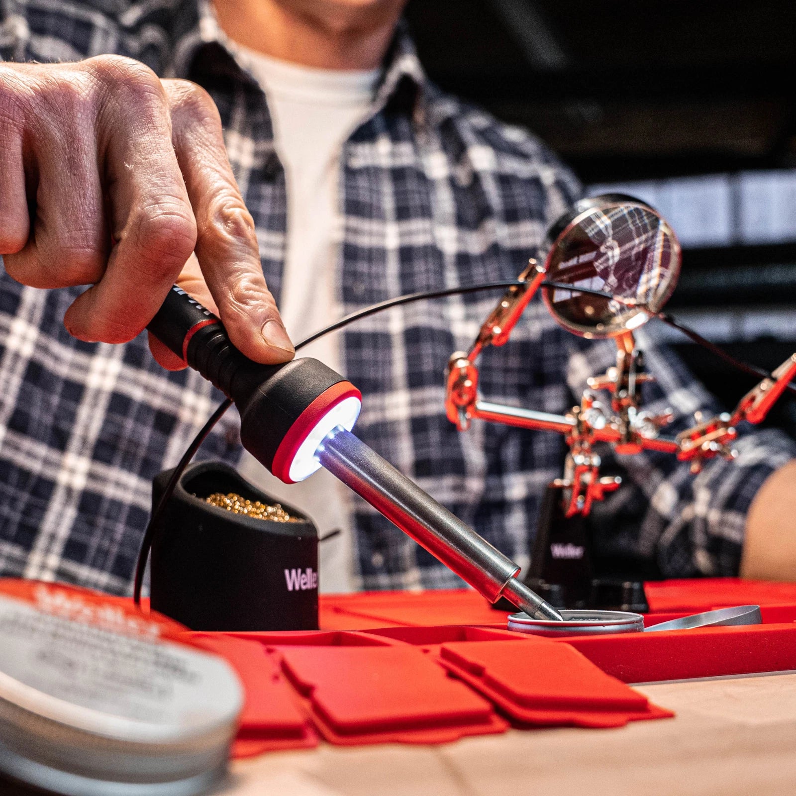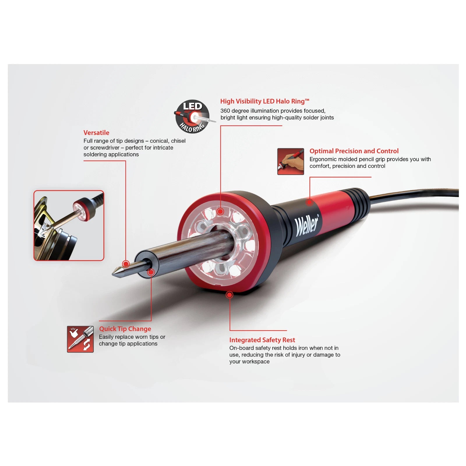 Achieve precise and professional soldering results with the Weller 30W Soldering Iron, featuring innovative LED halo ring illumination. Designed for comfort, versatility, and safety, this soldering iron is ideal for electronics, wire joining, and hobby projects.