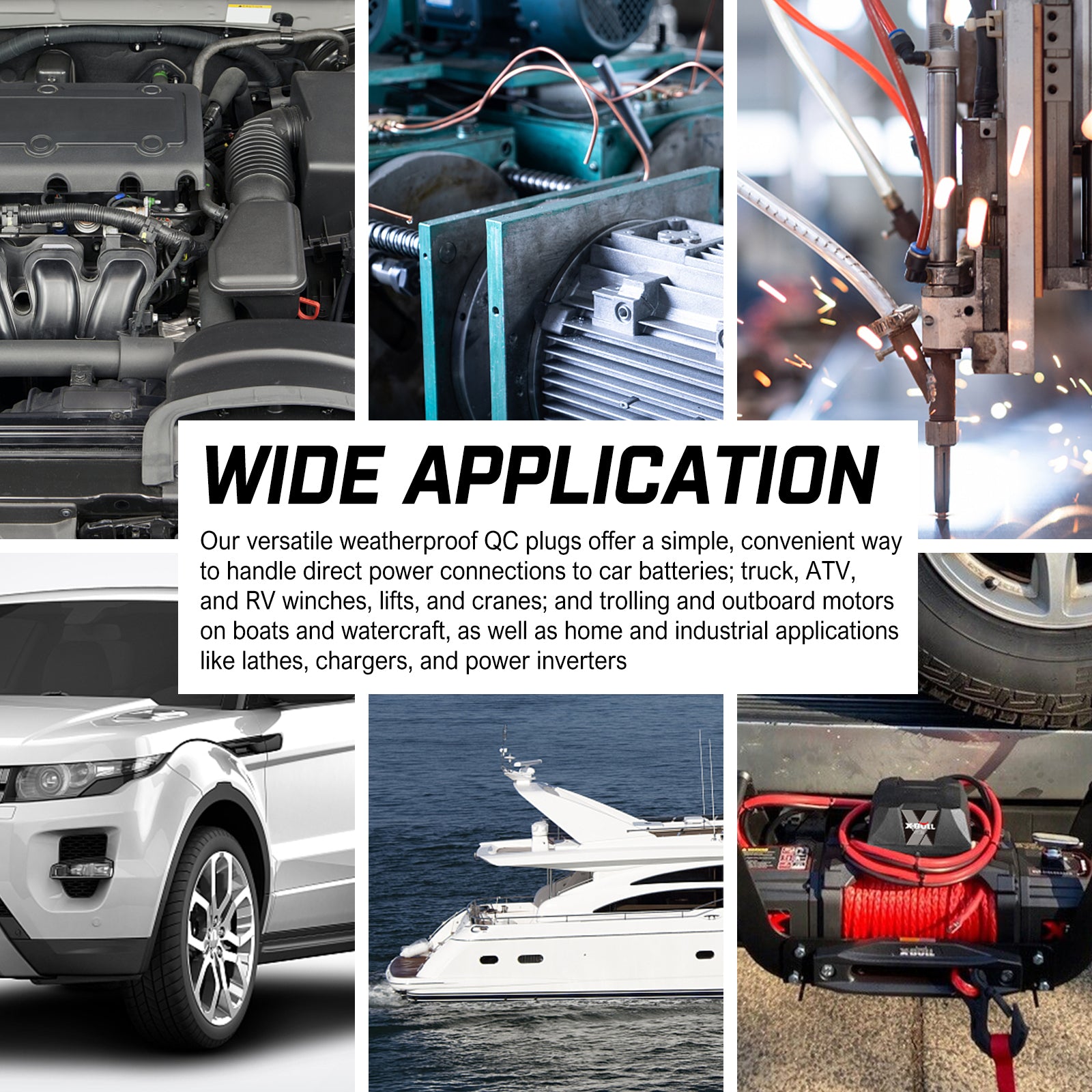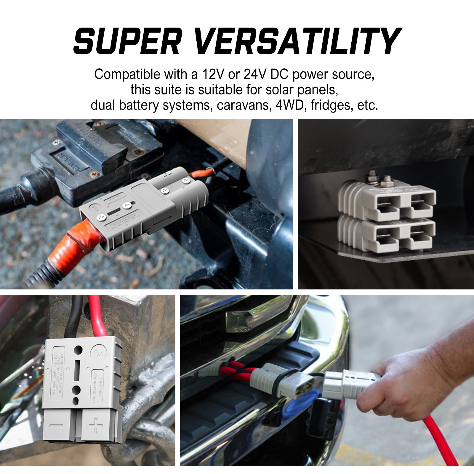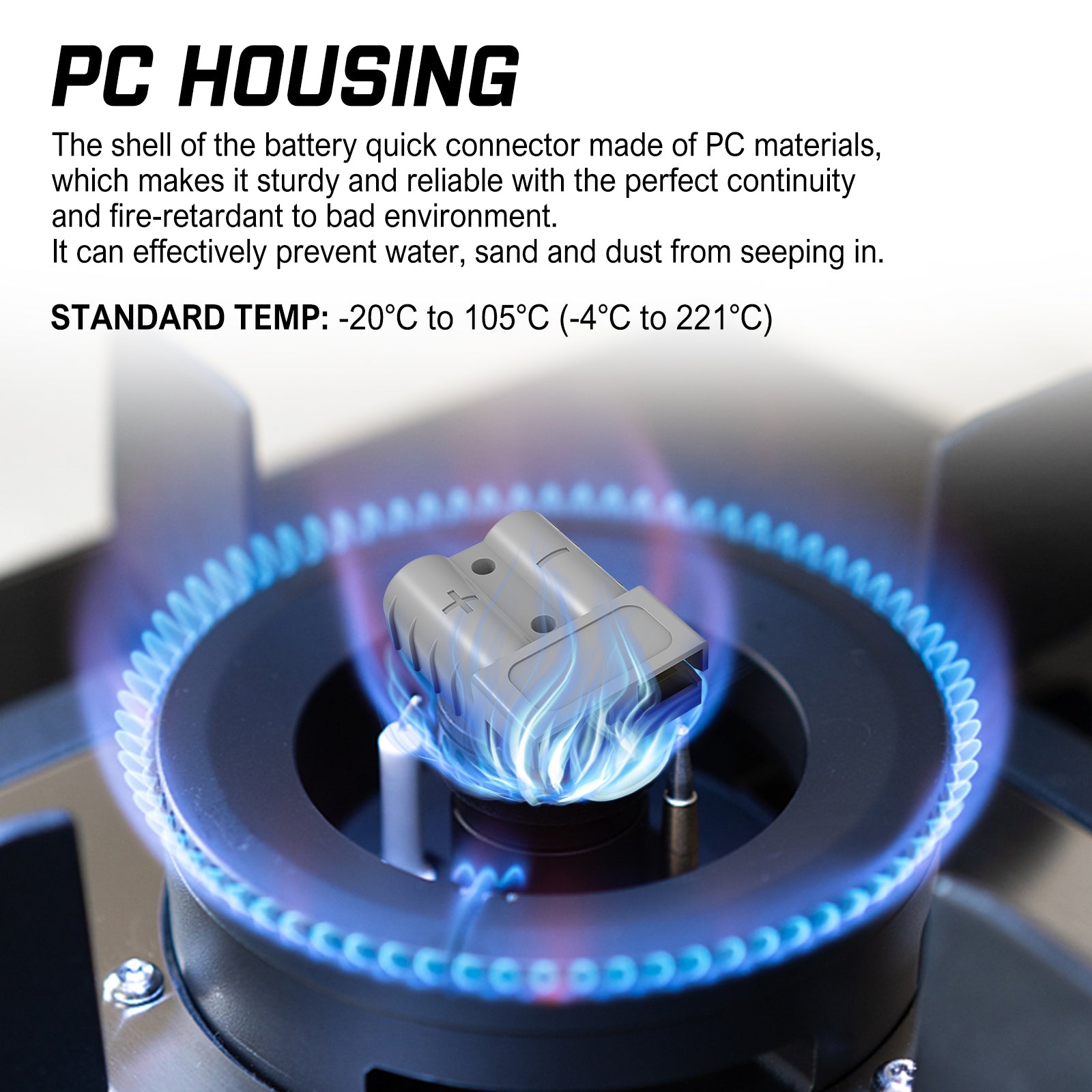 Rated current: 50AVoltage: Maximum 600VWorking voltage: 12v or 24vcolor: grayOperating temperature: -20 to 105Cable size: 6BS / 6AWG (maximum 13.3 square millimeters)Life cycle: 10,000 mating cyclesFire resistance: PC UL94V-0Pressure resistance: 2 tonsSize: 36*48.2*16 mmWeight: 230gNote: