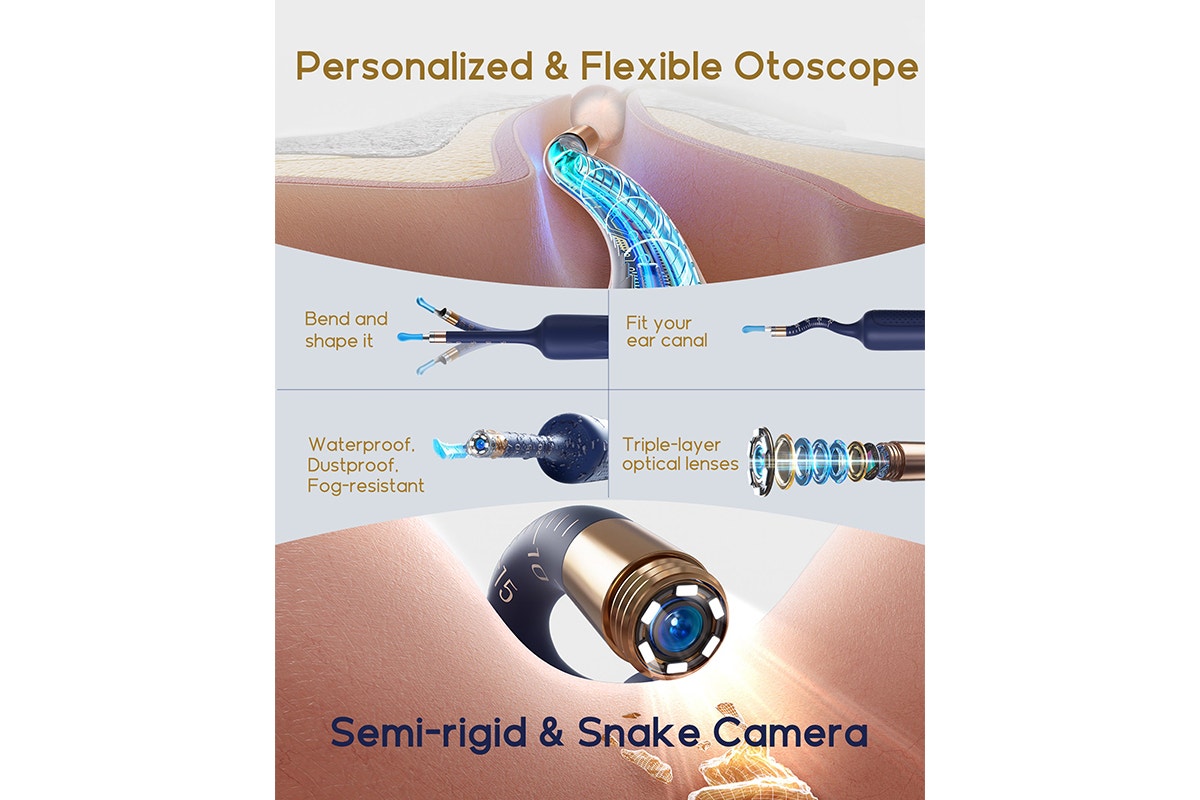 This is the first advanced 1080P camera, providing a crystal-clear image on your phone for precise wax removal. Equipped with a 10-megapixel micro camera, it also helps you see and clear dirt from pores -slide the ring accessory across your skin to drain accumulated impurities. The flexible silicone tube lens and high-quality 3P precision lens capture the ear canal in stunning detail with no lag.