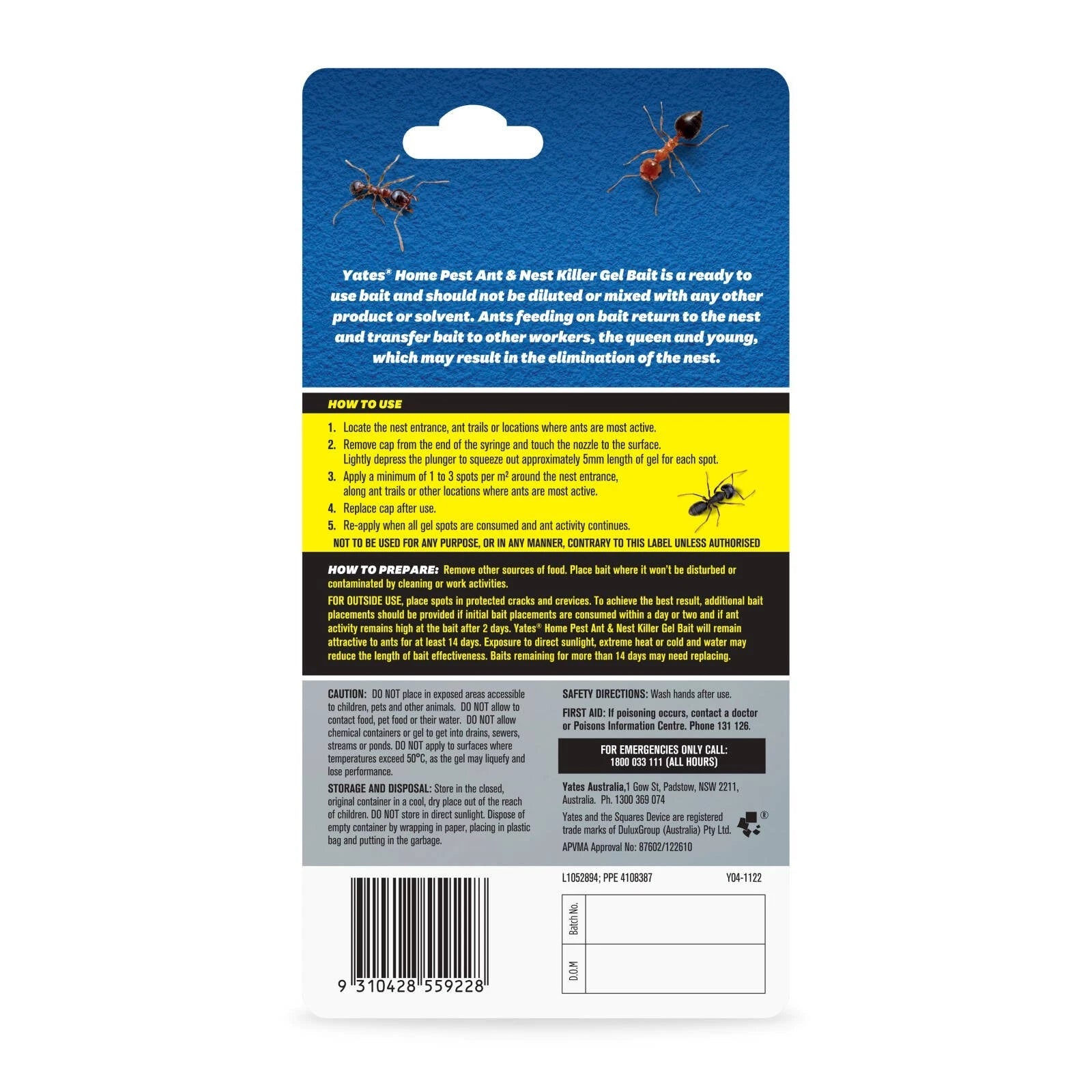 Effectively eliminate ants and their nests with Yates Home Pest Ant & Nest Killer Gel Bait. Designed for both indoor and outdoor use, this professional-grade formula targets the entire colony, including the queen, ensuring long-lasting pest control.