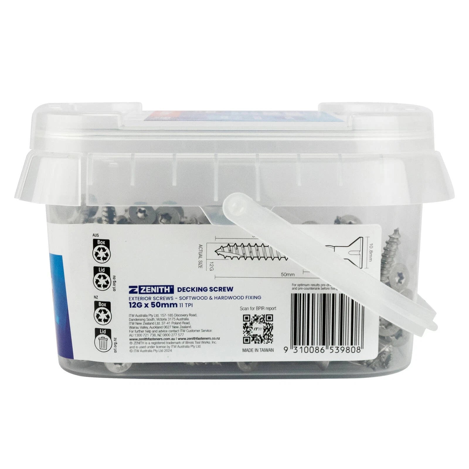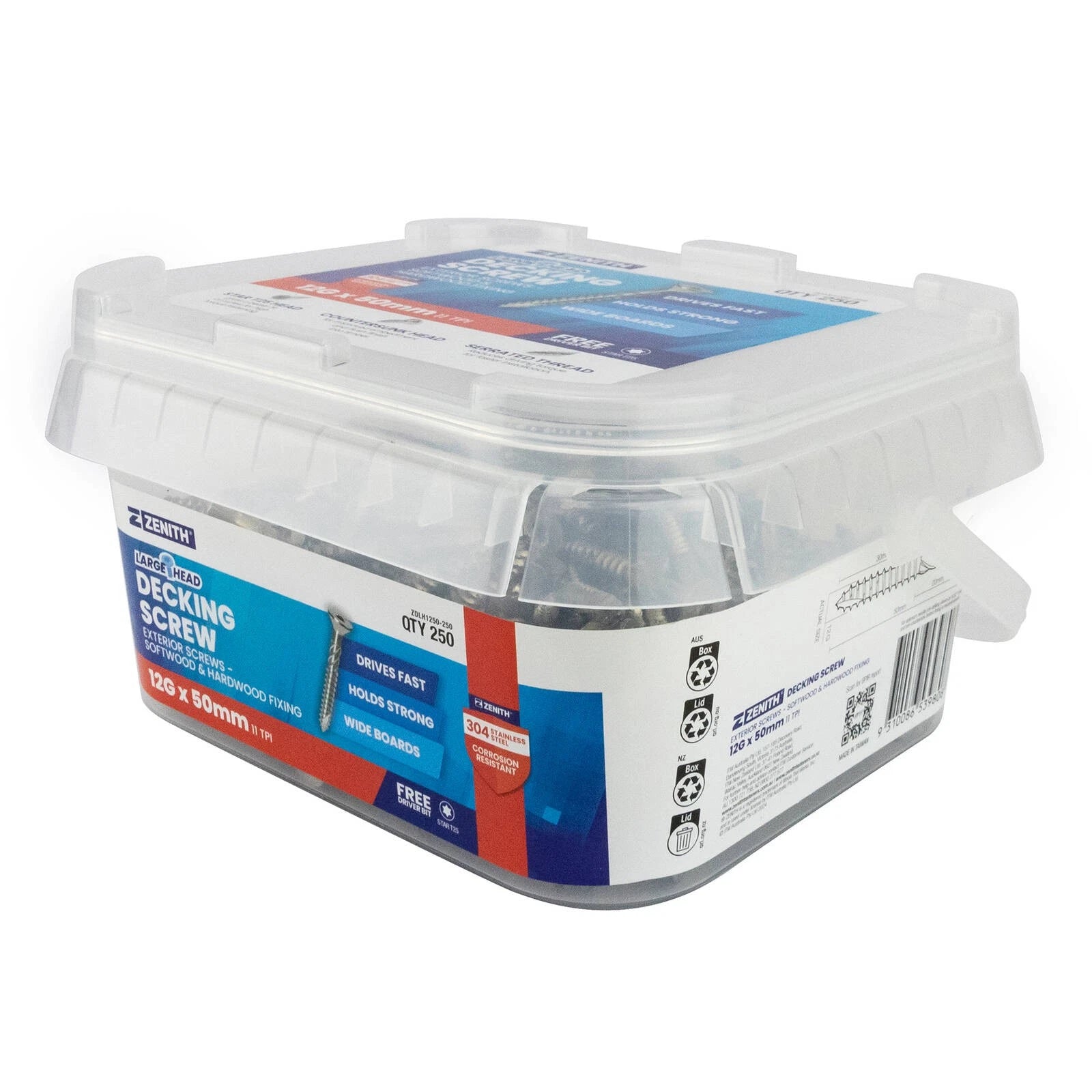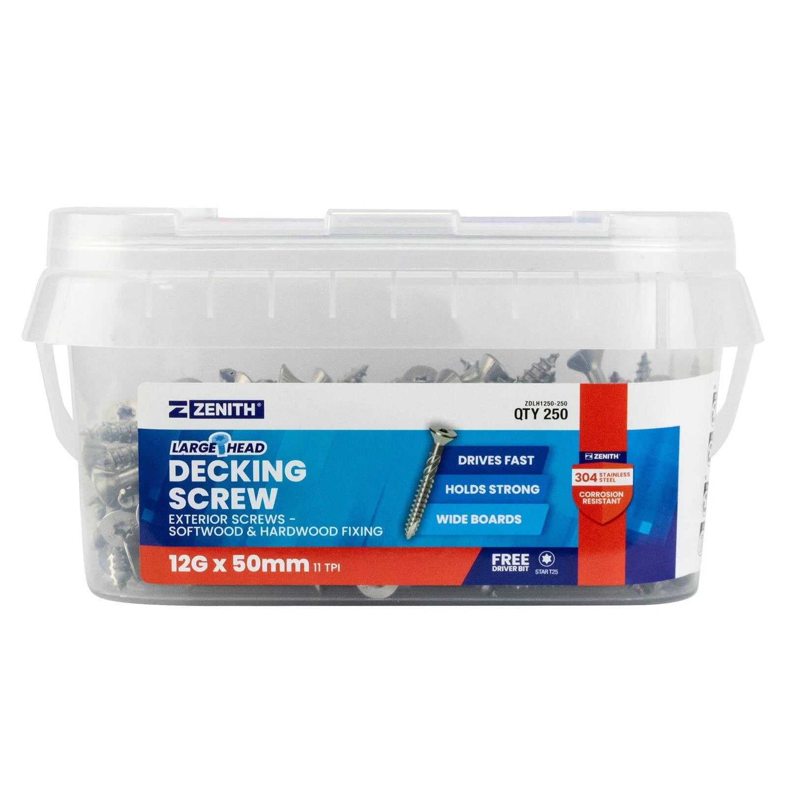 1 x Zenith Large Head Decking Screw T25 12G x 50mm SS304 – 250 Pack