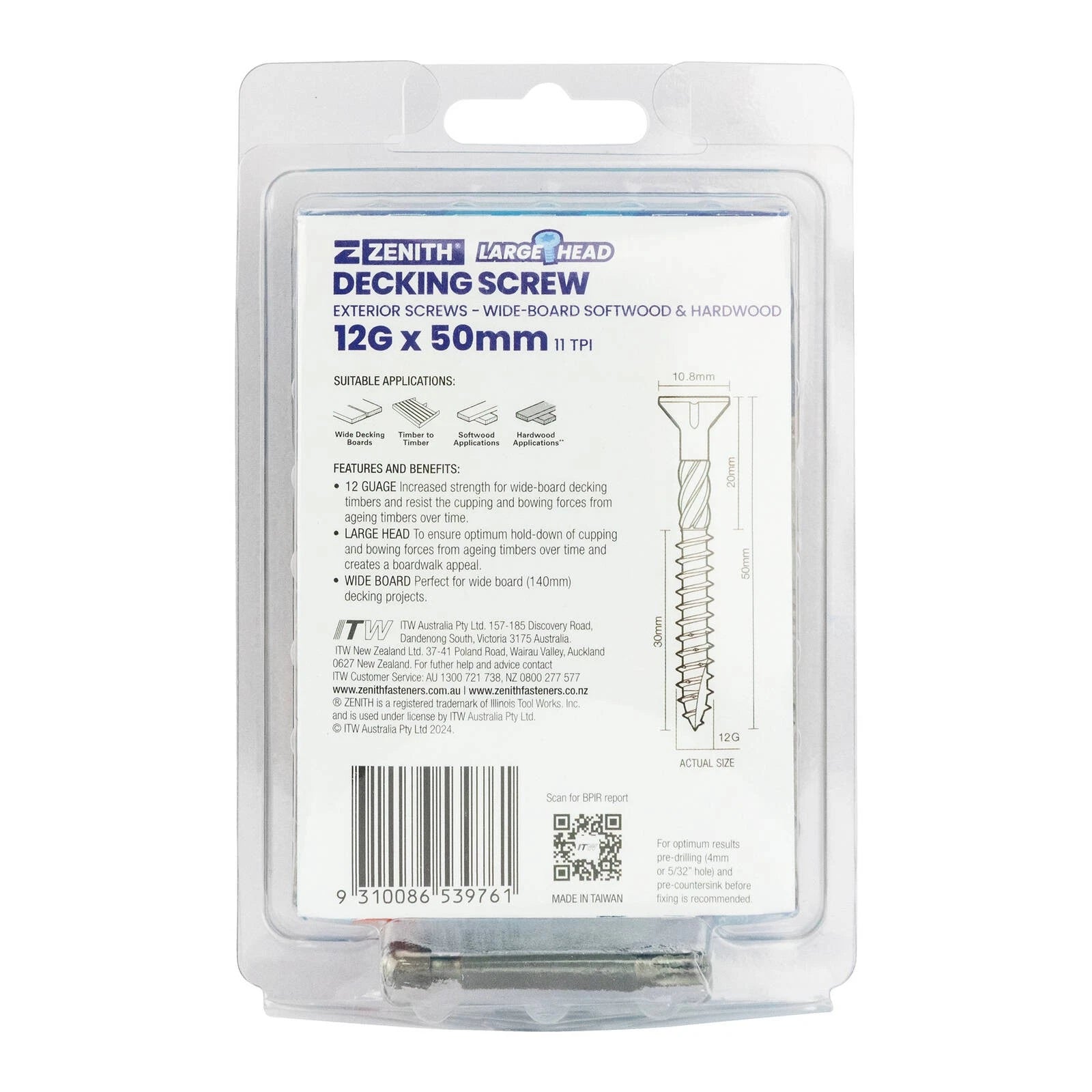 1 x Zenith Large Head Decking Screw T25 12G x 50mm SS304 – 50 Pcs