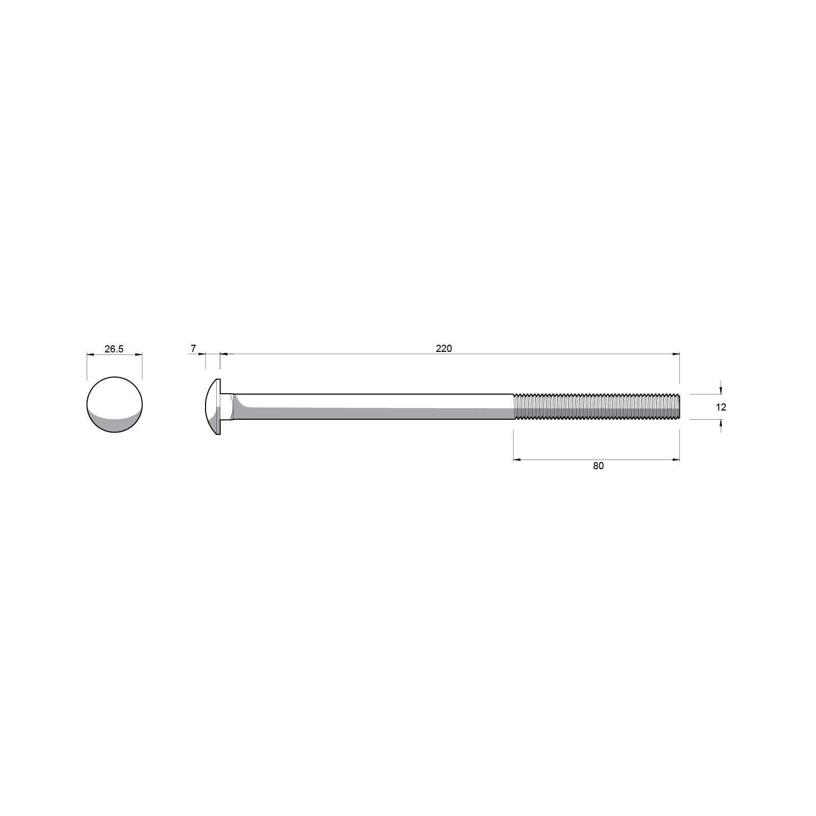 Includes 1 x ZENITH M12 x 220mm Hot Dip Galvanised Cup Head Bolt & Nut set.