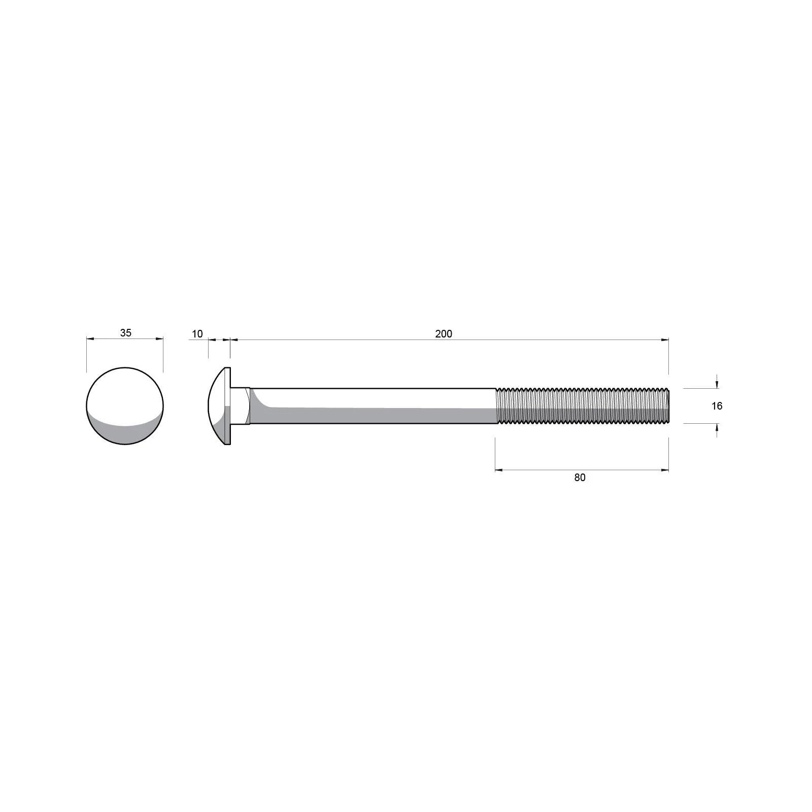Includes 1 x ZENITH M16 x 200mm Hot Dip Galvanised Cup Head Bolt & Nut set.
