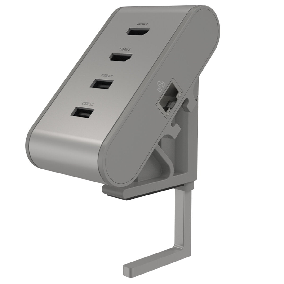 The ZHub is a simple and inexpensive dual-video dock featuring 2 USB-A charging ports, 2 HDMI video ports, and an Ethernet connection. Use the USB ports for data and charging your laptop. The included USB-C power cable lets you conveniently charge from a wall outlet. Its compact size makes it ideal for portable use, easily attaching and detaching from its bracket without tools. The patented top-down clamp securely attaches to your desk.